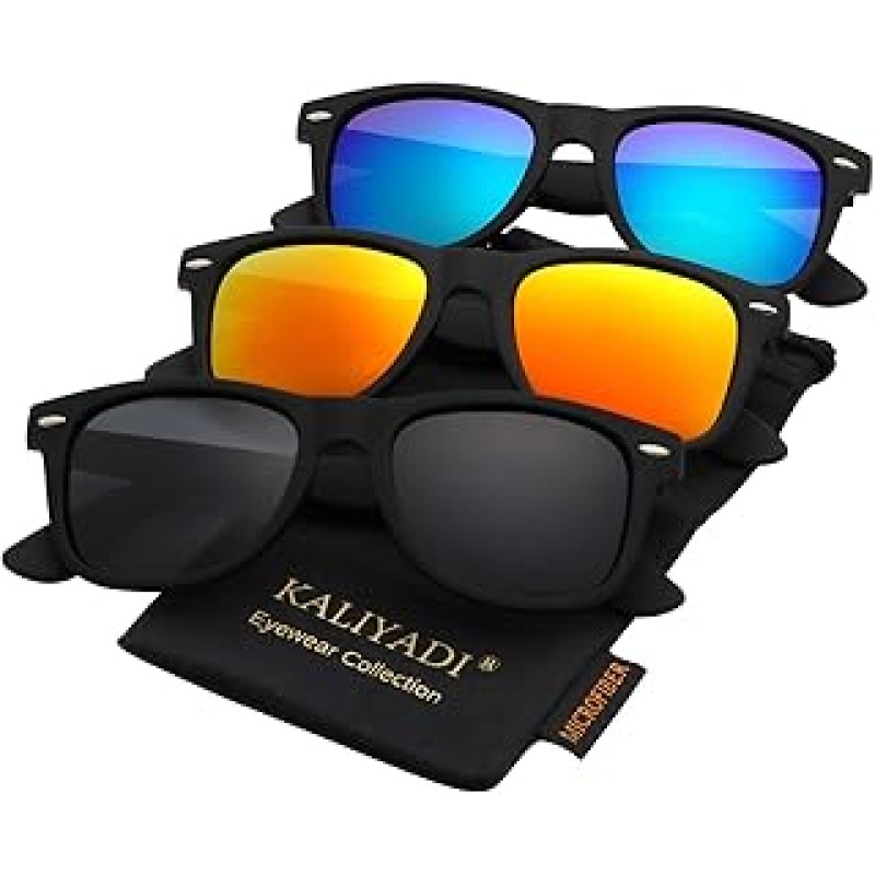 - ★ Gift Ideas Package and Brand Service ▶ Classic sunglasses*3, microfiber pouch*3, microfiber glasses cleaning cloth*3, gift box*1. Our sunglasses for men women are also gift packed, which will be great gifts for your family and friends! All KALIYADI customers enjoy brand service for our polarized sunglasses. The integrity of every box and the quality of the lenses are double checked by third-party companies. And that goes with a lifetime support!